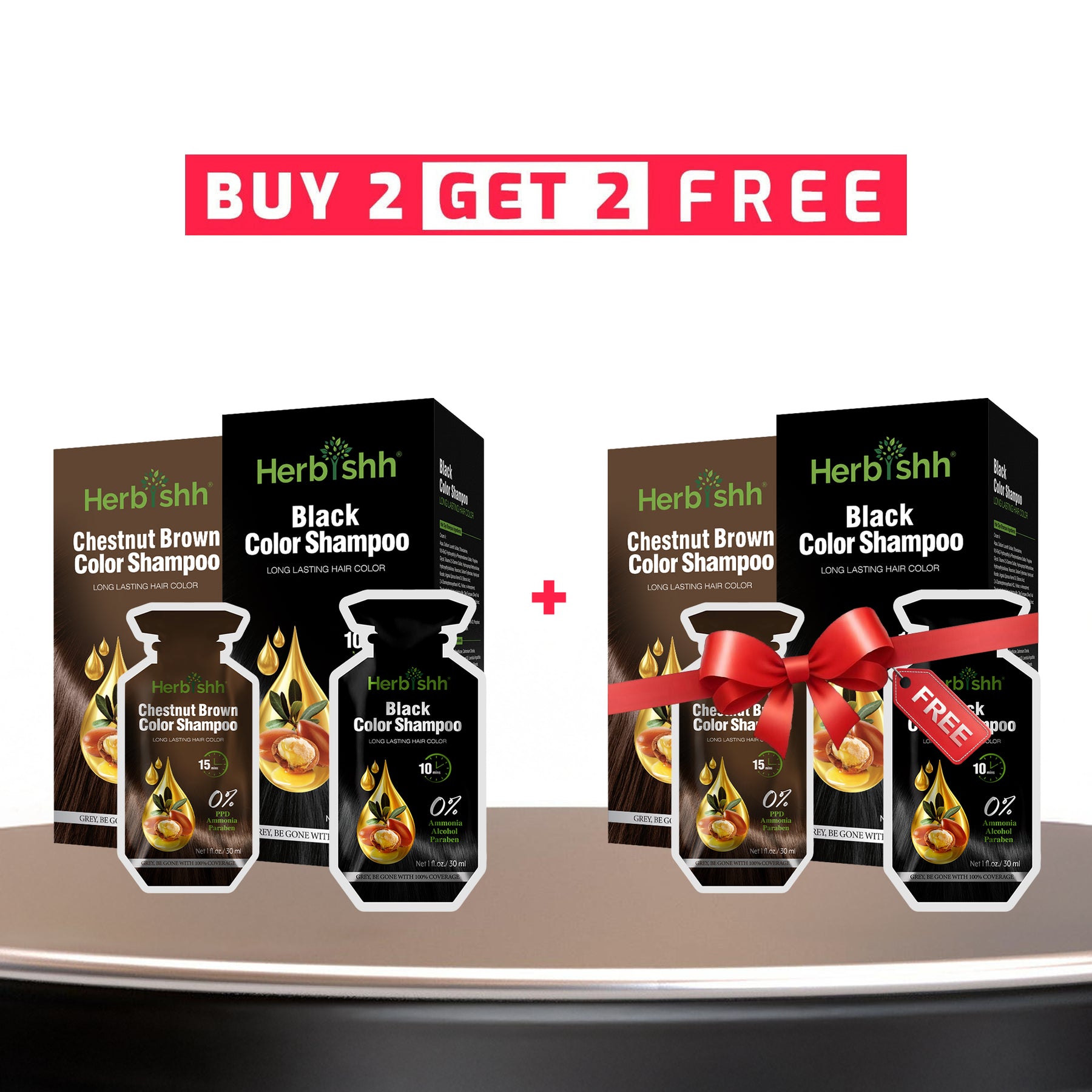 Buy 1 Get 1 Travel size Color Shampoo Sachets - Herbishh-BOGO Hair Dye.